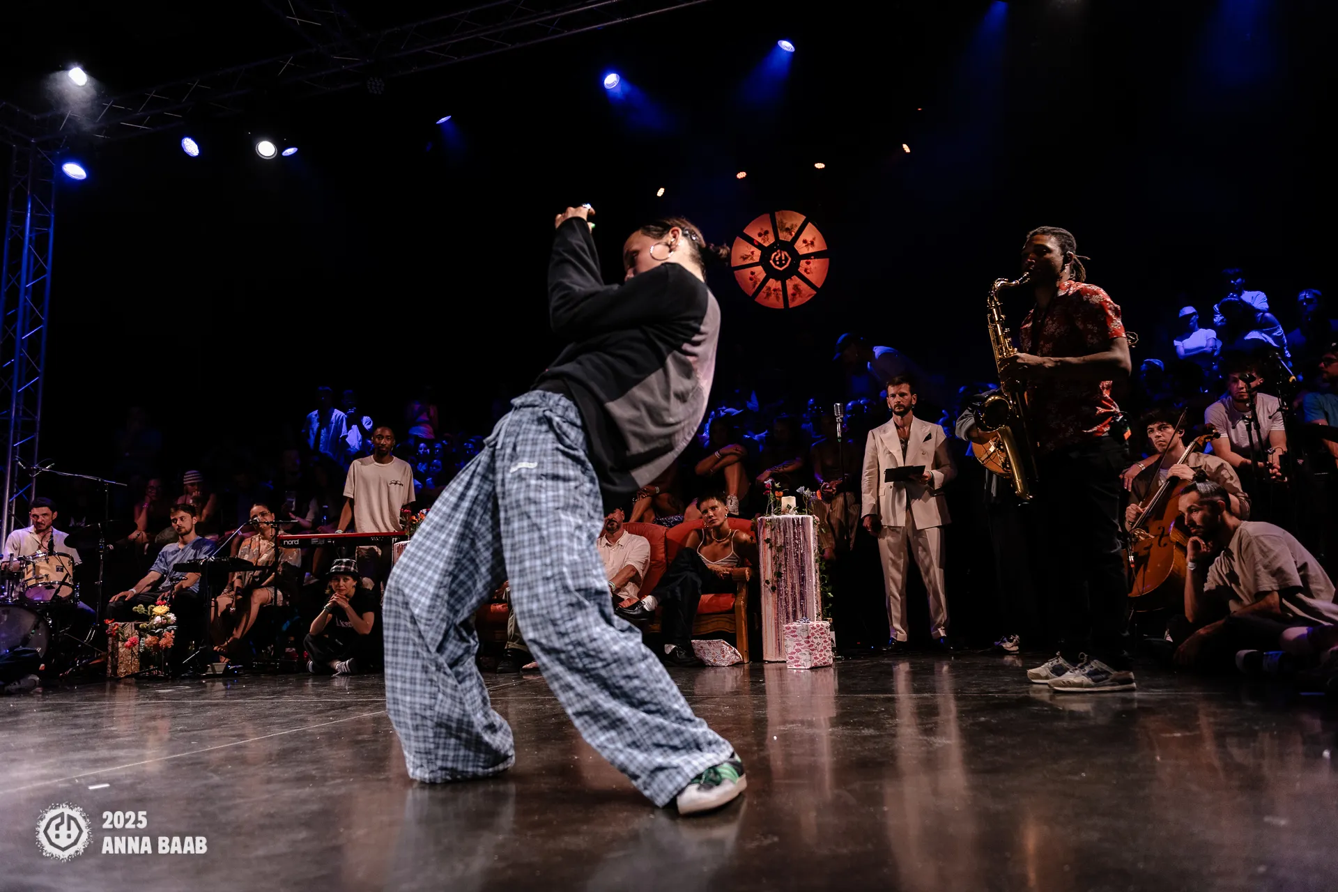 Le hip-hop freestyle est adaptée à des petits espaces, centrée autour du groove et du mouvement interne du corps. Ainsi, en resserrant l’espace, les danseurs et danseuses vont focaliser le centre de l’attention sur le cœur de leurs mouvement. Le public sera de plus en plus près pour pouvoir observer les détails et condenser l’énergie au centre de ce cercle.
